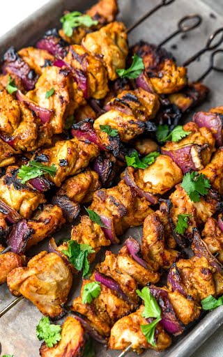 Juicy, marinated chicken skewers grilled to perfection with warm Moroccan spices.