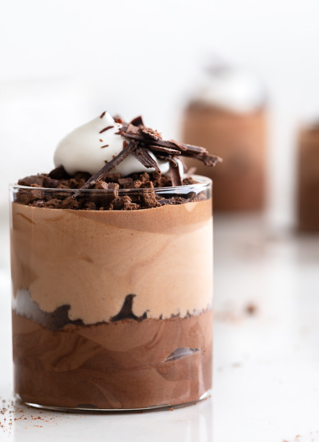 Silky, rich chocolate mousse layered in delicate cups, topped with whipped cream and a sprinkle of cocoa — a decadent, melt-in-your-mouth indulgence.
