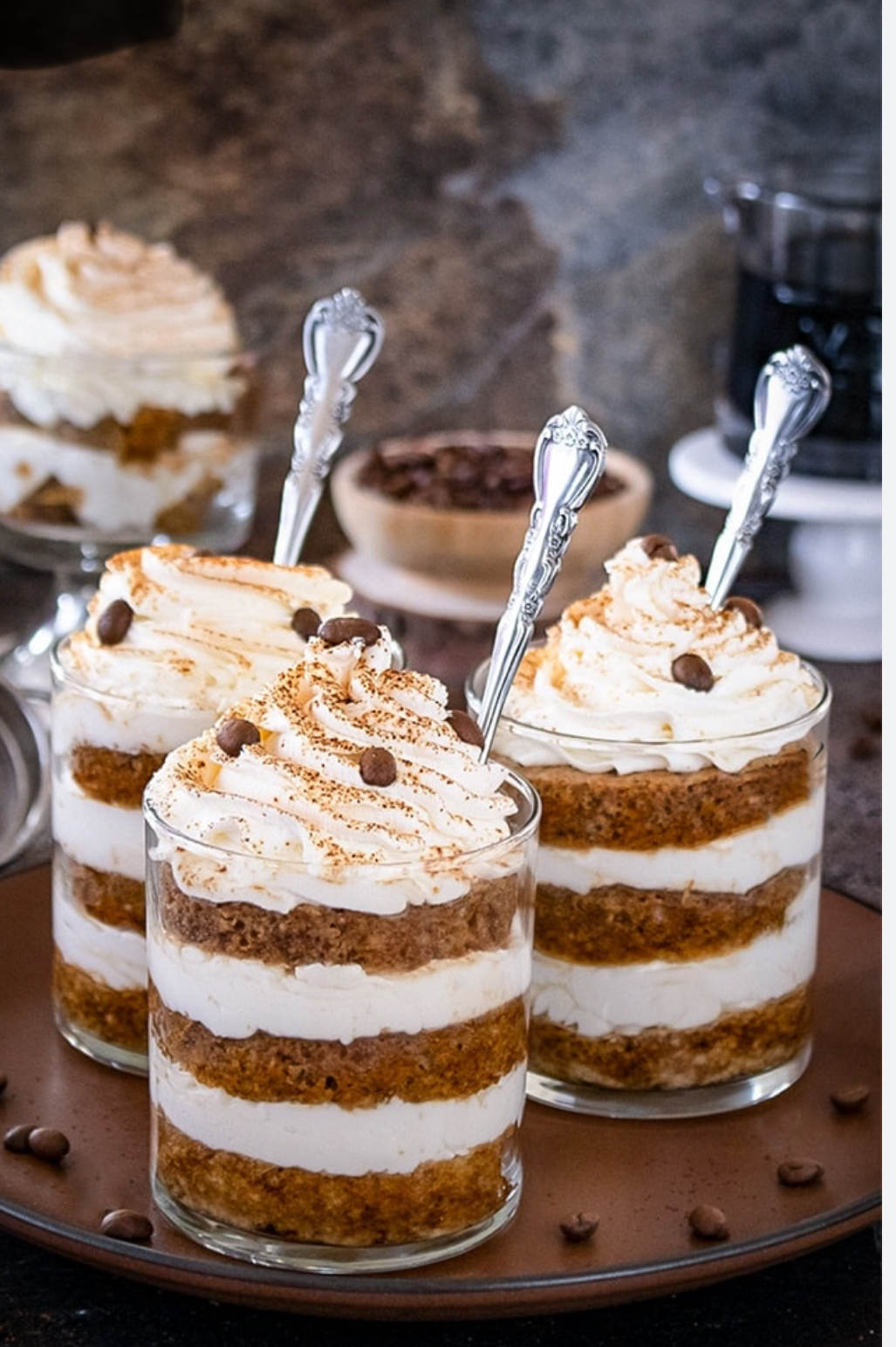 Classic Italian dessert reimagined in cups, featuring layers of coffee-soaked ladyfingers, creamy mascarpone, and a dusting of cocoa — a perfect balance of bold and sweet.