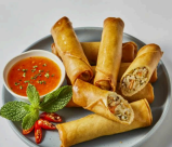 Crispy rolls stuffed with fresh veggies or meat — an appetizer with a crunch.