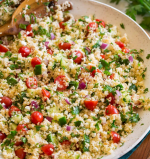 Fluffy steamed semolina grains, light and versatile, often paired with vegetables, meats, or stews — a staple of North African cuisine that’s both comforting and satisfying.