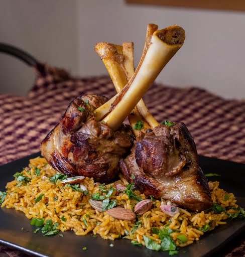 Flavorful basmati rice infused with a romatic spices, paired with marinated lamb or chicken, and slow-cooked to tender perfection, traditionally smoked for an authentic Yemeni touch.
