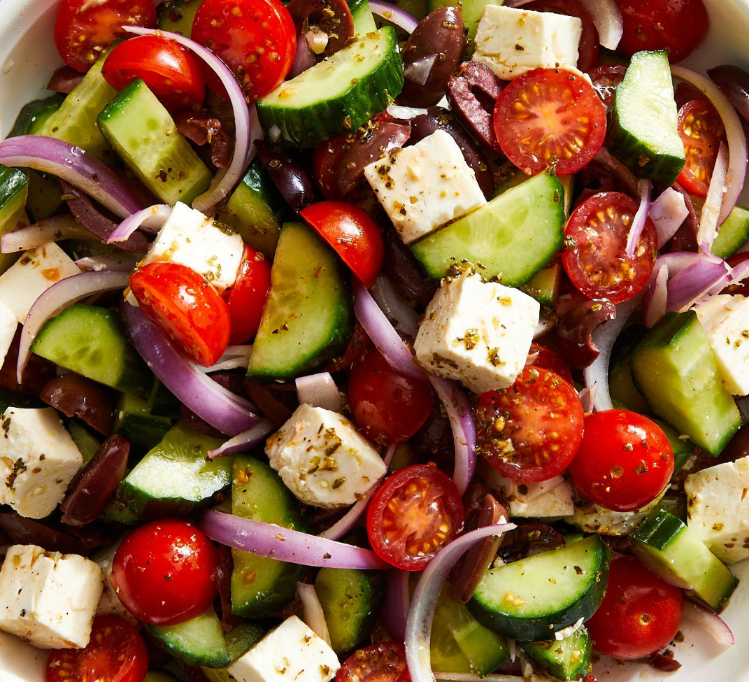 A classic Mediterranean mix of tomatoes, cucumbers, red onions, olives, and feta cheese, dressed with olive oil and oregano — a fresh, tangy, and timeless favorite.